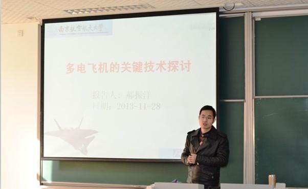2013年11月28日上午10时,我院“紫冬话坊”系列讲座活动之“术响南航”青年教授论坛第一场学术讲座在A18号楼231教室顺利进行。本次活动很荣幸邀请到了电气系青年教师郝振洋副教授为我院研究生作题为“多电飞机的关键技术探讨”的学术讲座。