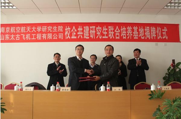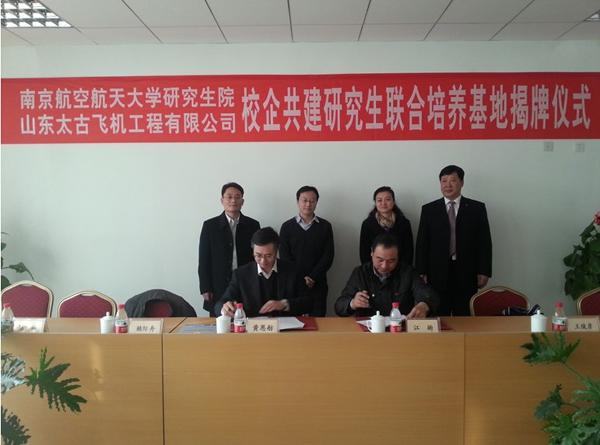 2013年12月6日,我校与山东太古飞机工程有限公司共建研究生联合培养基地签字暨挂牌仪式在济南顺利举行。出席仪式的有山东太古飞机工程有限公司总经理黄恩舫、副总经理杨光耀、培训部韩勇强经理、技术中心顾辉主任、技术工程部常城经理,南航大研究生院副院长江驹、番茄app 副院长赖际舟、电气工程系副主任陈新以及公司所有领导和部分员工,签字挂牌仪式由韩勇强主持。