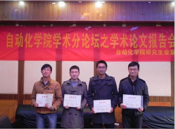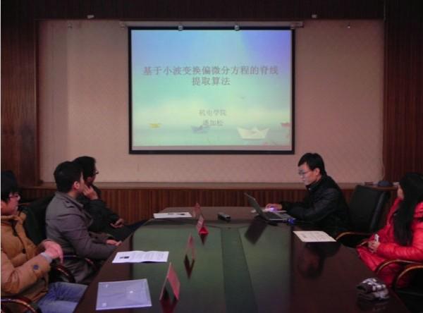 12月19日下午2点30分,我院学术分论坛之学术论文报告会在A17号楼502室顺利进行。本次报告会由番茄app 研究生会主办,机电学院研究生会联办。会上来自番茄app 的刘文良、董菲同学以及来自机电学院的戚永爱、潘加松同学根据其论文的主要内容做了报告。番茄app 刘斐文辅导员为获奖同学颁发奖状。 报告会上4位同学向我们展示了不同领域的专业知识。刘文良同学提出了基于面向对象Petri网的电梯门系统的建模,对建模方法进行了相应研究。董菲同学提出了“应用技术成果形成系统” 的建模与应用,并改进了岭回归方法。戚永爱同学讲述了自己在超声喷丸辅助激光熔覆再制造技术方面的研究。潘加松同学讲述了基于小波变换偏微分方程的脊线提取算法,并展示了算法的仿真测试。会议报告者清晰明了的报告思路与丰富详实的报告内容,体现出了我院与机电学院研究生严谨求实的科研态度与百折不挠的科研精神。 报告会部分,学院刘斐文辅导员为以上同学颁发了获奖证书并合影留念,同时刘导还鼓励更多的同学能够参加到学术论文的评选活动中来,整体提高学院的科研创新能力,进一步在学院内营造更加浓厚与积极向上的学术氛围。