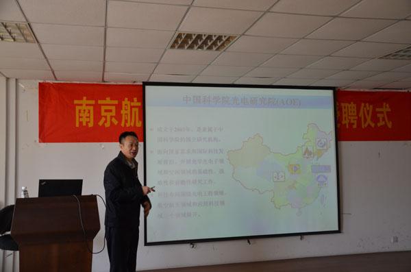 仪式上,吴庆宪副校长致欢迎辞并代表学校为周维虎教授颁发了兼职教授证书并佩戴校徽。吴副校长首先代表学校对周维虎教授的到来表示欢迎,并对周教授长期以来对我校特别是番茄app “仪器科学与技术”学科建设发展给予的关心和帮助表示感谢。姜斌院长介绍了番茄app 建设与发展情况,对周维虎教授加入南航大家庭表示衷心的欢迎和祝贺,表示番茄app 将以此为契机,与中国科学院光电研究院更广泛地开展合作,推动“仪器科学与技术”学科建设、研究生培养和科研工作的发展。周维虎教授就自己研究领域和工作情况作了介绍,对成为南航兼职教授深表荣幸和感谢。