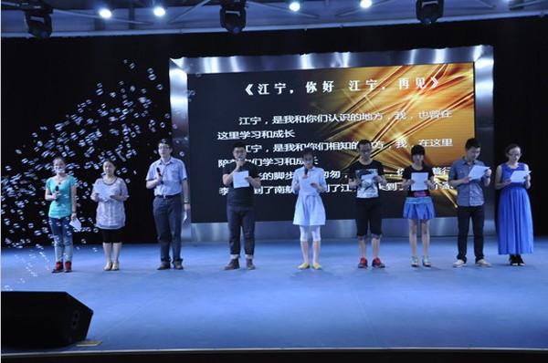 各年级同学精心准备的节目,有的贴近生活,有的创意无限,有的古朴唯美,无不体现着所有演出者及工作人员对本场晚会的辛勤付出。晚会最感人的还是全院辅导员带来的《江宁你好,江宁再见》的诗朗诵,他们把三年来的故事、感动向观众们娓娓道来,打动了在场的每一个人。
