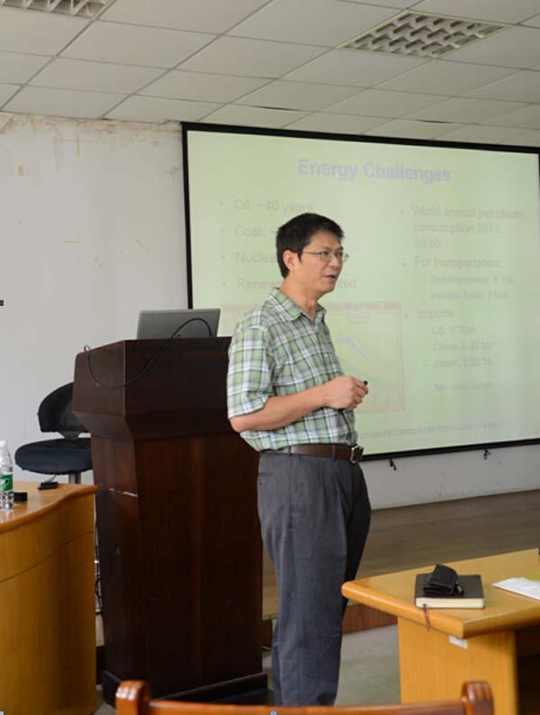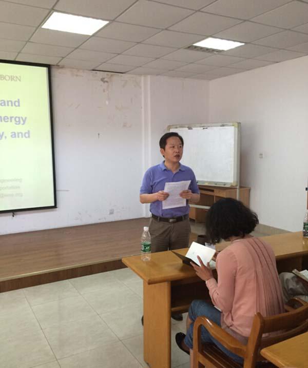会上,米教授首先介绍了交通系统在当今社会的重要性,其次用一段视频向大家展示了未来汽车驾驶模式和未来交通系统。在报告中,米教授指出一个涵盖自动驾驶、清洁能源和交通电气化的集成交通系统将会是未来发展趋势,并详细讨论了集成交通系统的特性、发展趋势和关键技术,以及它是怎样实现节能减排、减少事故和降低成本。报告最后,米教授介绍了其课题组的研究工作及近期取得的研究成果。新颖的想法和生动的演讲成功吸引了参会者的兴趣,在提问环节,广大师生与米教授进行了更为深入的交流和讨论。