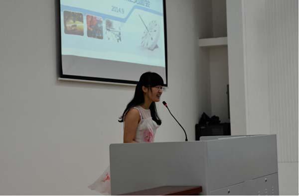 在臧寿鸿老师的发言结束之后,会议主持人刘斐文辅导员,为大家介绍了14级研究生的分班情况和班委联系方式,并对近期的研究生工作做了相关的介绍与安排。