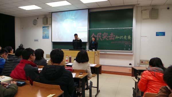 12月28日与29日晚,由2012级党支部和团总支中心组联合举办的两场“全民突击”专业知识竞赛活动在将军路校区6101教室成功举行。电机学陈宝林老师,数字电子技术林华老师,自动控制原理何真老师, 203班班主任毛玲老师,204班班主任朱学忠老师,12级辅导员晏辞老师以及各专业同学参与了此次竞赛。