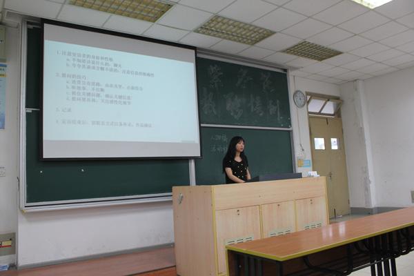 5月27日,校记者团记者徐妍钰、王快快围绕如何进行实践活动宣传以及新闻稿的撰写两个方面对番茄app 2014级年级干部展开技能培训。