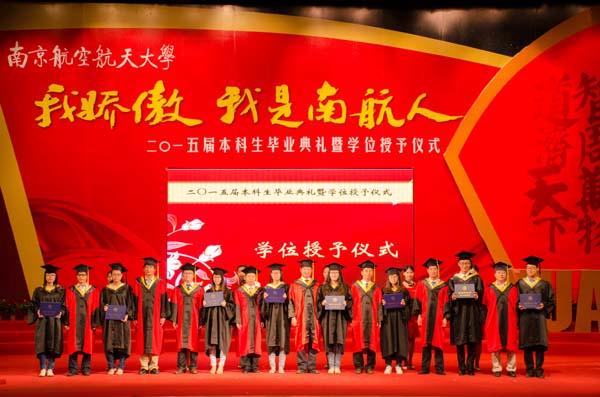 正式典礼在雄壮的国歌声中开始。首先,2015届毕业生代表,0311302班班长黄坤同学代表全体毕业生对母校四年来的关怀表达了真挚谢意。回首四年走过的日日夜夜,有吐槽,有自省,更有决心和勉励,他祝福同学们前程似锦,祝福南航、祝福学院桃李芬芳!