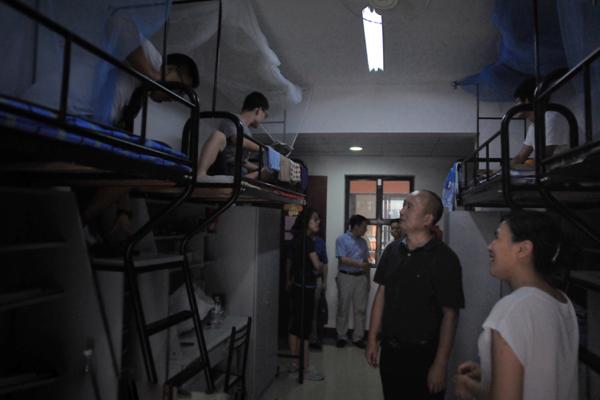 在35栋9楼的研究生新生宿舍,赖际舟院长重点关注了新生住宿条件和家具配套设施等情况,并与研究生新生深入交流。