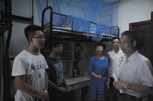 在36栋男生宿舍。王晓琳院长与本科新生热情攀谈,对新生提出的学习、生活上的问题进行耐心解答,并与新生家长们亲切交流。阮新波院长对研究生新生的科研、生活情况予以关心了解,督促研究生们沉下心做科研。