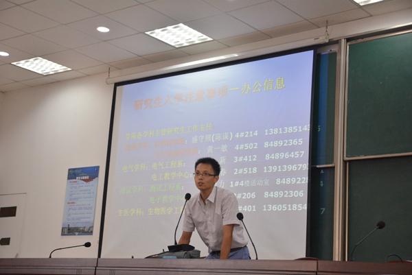 会上,姜院长首先代表学院全体师生向2015级研究生新生的到来表示热烈欢迎,对他们寄予了希望、提出了要求。姜院长指出兴趣和毅力是科学研究的动力,勤奋和创新是科学研究的灵魂,博学、合作是科学研究的基础,严谨的学风是科学研究的生命,国家利益是科学研究的根本,希望研究生新生通过努力拼搏实现青春的梦想。赖院长详细介绍了学校和学院的基本情况,重点对学院的学科和专业作了介绍,他鼓励同学在校期间,充分利用各种平台,用心科研,不断培养提高自身素质,同时要求同学们在校期间要加强自律意识,遵守校规校纪,掌握独立学习、独立生活的本领。沈书记介绍了研究生教育管理的模式,并结合近4年的毕业生就业数据解析了学院研究生的就业形势,她鼓励同学们学习科研之余积极参加各类实践活动,锻炼提升各方面能力。陈杰老师就选课、课程更改、毕业答辩等环节需要注意的事项进行说明,并强调了《研究生手册》对于研究生的指导作用。辅导员季娟公布了新生分班情况,带新生认识了各班长及党支部书记,并对近期工作进行了布置安排。院研会主席周聪展示了院研会的组织建设情况和品牌活动,并向全体研究生新生发出了加入院研会的邀请。
