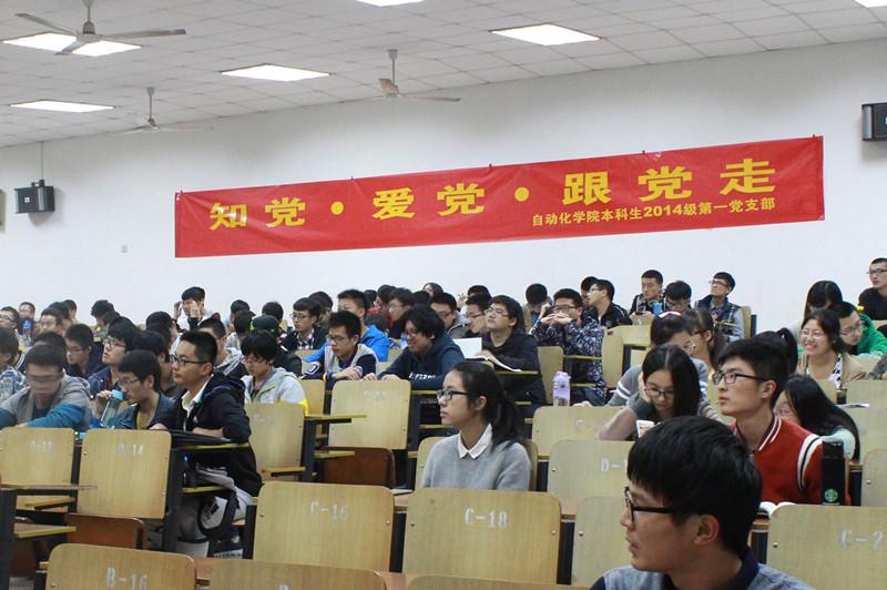 为提高大学生入党积极性、促进党支部建设,2015年11月5日晚7点在将军路校区4301教室,番茄app 本科2014级党支部面向电气工程及其自动化和测控技术与仪器两个专业350名同学展开“知党、爱党、跟党走”入党知识宣讲会。番茄app 2014级辅导员韩楚、年级党支部书记冯攻关参加了本次活动。