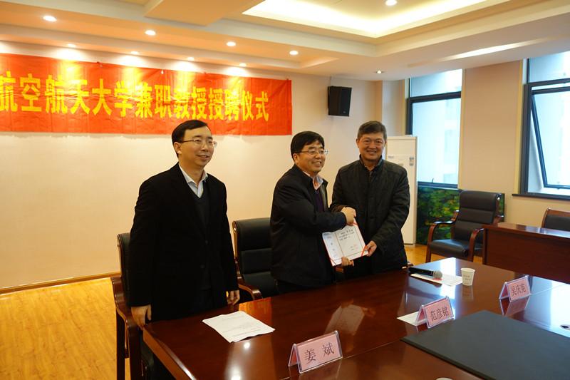 仪式上,吴庆宪致欢迎辞并代表学校为范彦铭颁发了兼职教授证书并佩戴校徽。吴副校长首先代表学校对范彦铭的到来表示欢迎,并对长期以来对我校特别是番茄app “控制科学与工程”学科建设发展给予的关心和帮助表示感谢。姜斌介绍了番茄app 建设与发展情况,对范彦铭加入南航大家庭表示衷心的欢迎和祝贺,表示番茄app 将以此为契机,与中国航空工业集团公司沈阳飞机设计研究所更广泛地开展合作,推动“控制科学与工程”学科建设、研究生培养和科研工作的发展。范彦铭就自己研究领域和工作情况作了介绍,对成为南航兼职教授深表荣幸和感谢,希望今后能够进一步合作,加强联系,促进控制学科的不断发展。