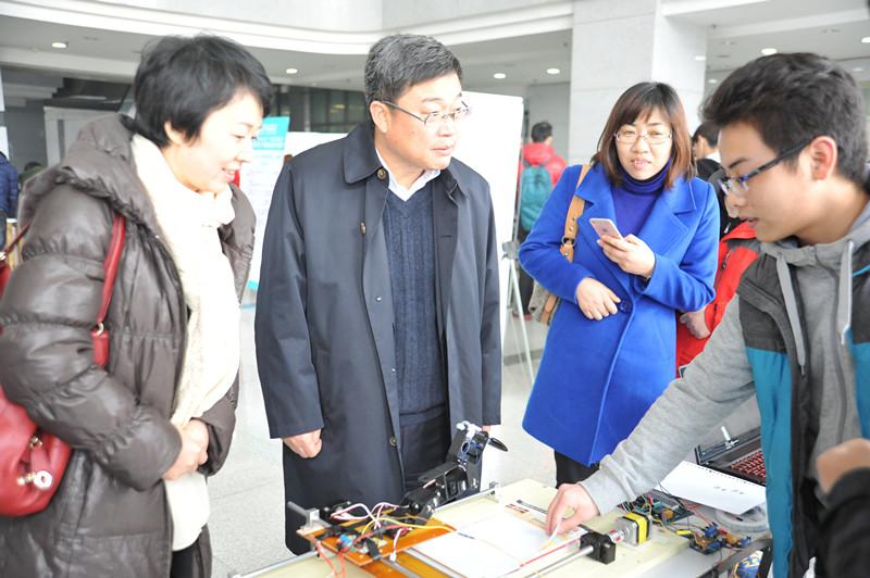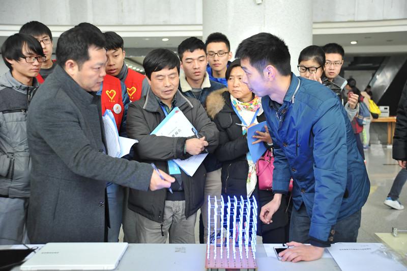 决赛于下午一点半开始,评委由东南大学胡仁杰教授、解放军理工大学潘克修教授、徐志军教授,南京师范大学王恩荣教授、南京工业职业技术学院狄建雄教授5位校外专家及校内专家10人共15位专家组成。决赛评审区内专家分组进行评审,同学们的巧妙创意和工程实践能力令评委们称赞不已。经过评委分组评分和各组合议,本届竞赛共评出特等奖1项,一等奖9项,二等奖20项,优胜奖15项,最佳工程实践奖2项和最佳工程创意奖1项。