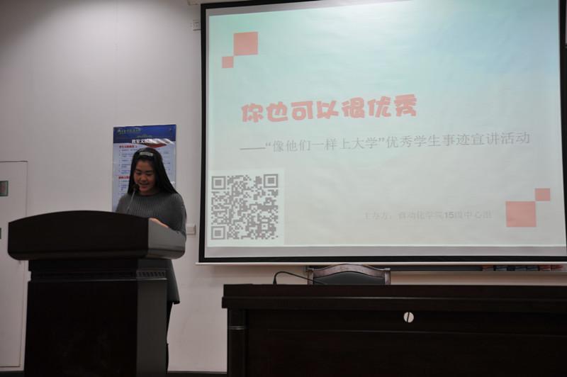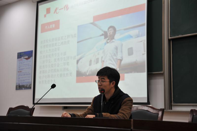 2015年12月22日下午4:00,我院2015级于D1213成功举办“像他们一样上大学”优秀学生事迹宣讲活动。此次宣讲活动旨在进一步发挥学生的朋辈教育作用,激励更多学生适应大学生活、学习,明确目标,全面发展,从而推动优良学风建设。活动邀请到13级工研班学生颜晔、12级学生尤一伟、孙林楠以及尹彦卿共四名优秀学生,15级辅导员孙瑜、黄巍导员、臧珂出席,15级近600名同学参加了本次宣讲会。