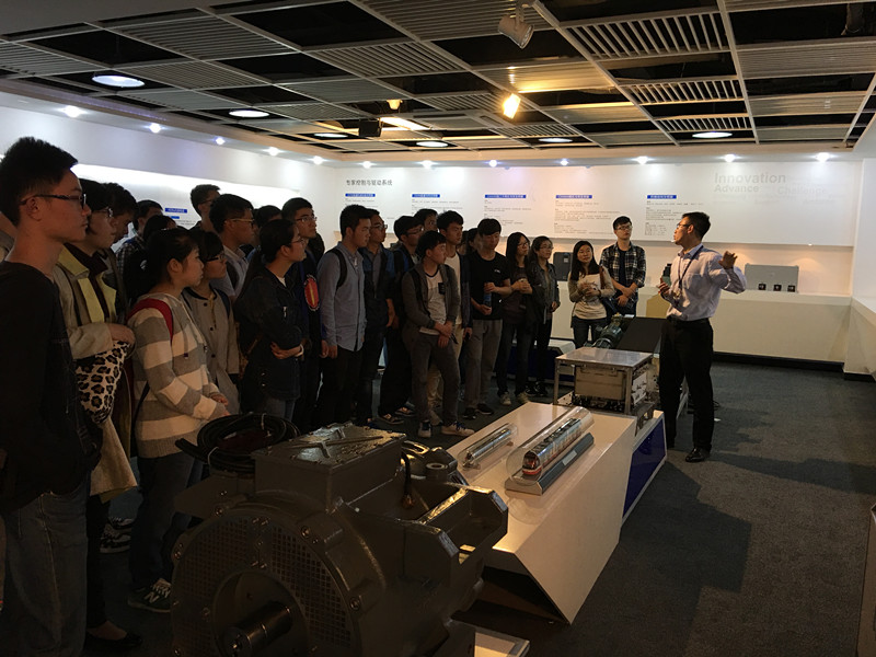 进入汇川大厅,工作人员便开始向学生讲解大厅内部陈列的机器人技术及其原理,同学们都听得十分认真。上了二楼展厅,展厅内陈列了一些汇川的产品,例如伺服电机,PL,变频器,电梯一体化控制器等,工作人员一一为学生讲解其工作原理及应用方向。对于尚未接触专业课的大一学生来说,理解这些产品及其原理可能还有些困难,但给了学生们一个大体的概念,对自己所学的东西与创造什么产品有关,又能运用于哪些行业。随后,学生来到位于五楼的会议室,汇川人事部经理刘娜请来销售和技术总监,向大家介绍了汇川的奋斗发展史,汇川人的情怀与理想,以及汇川对人才的要求。从人事经理到公司总监,在谈到人才需求时无一例外地强调了“情怀”、“责任意识”,给学生们留下了深刻的印象。