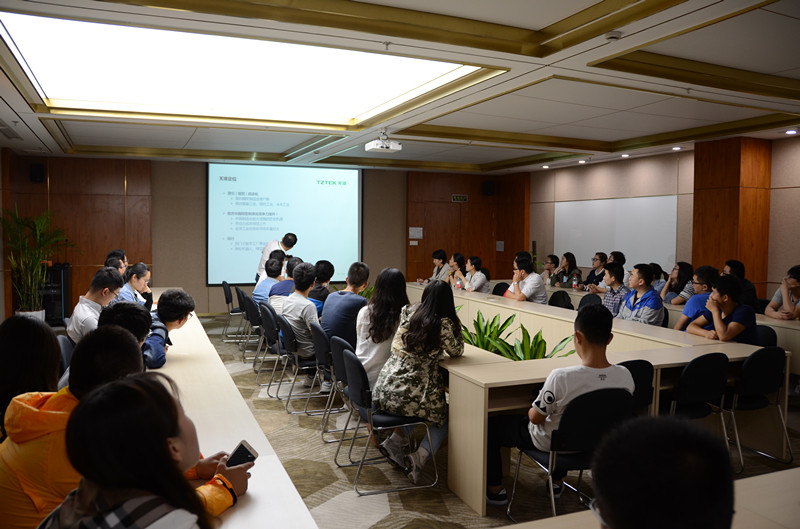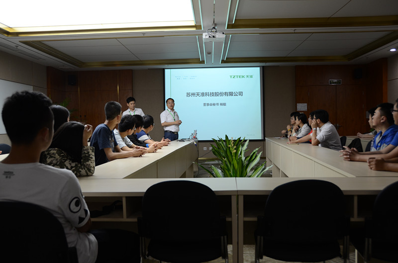 天准公司(TZTEK Company)是此次企业探索的最后一站。通过公司总经理助理耿悦彬先生的介绍,了解到天准目前拥有精密测量仪器、测量自动化设备、检测自动化设备和组装自动化设备等四大产品系列,其精密测量仪器是国内唯一自主研发的高端品牌,多年来稳居行业榜首,众多自动化设备与解决方案已成功运用到包括电子、汽车、食药等行业的现代化生产线。立足于现代工业、智能工业、未来工业领域的天准科技,在招聘专业上与番茄app 各个专业完全对口。在互动交流环节,耿总提出了对青年学生的期望,希望刚毕业的大学生工作更踏实、扎实,校园里没有学到的或者没学扎实的可以在工作岗位上得到提升,用行动展现自己的实力。
