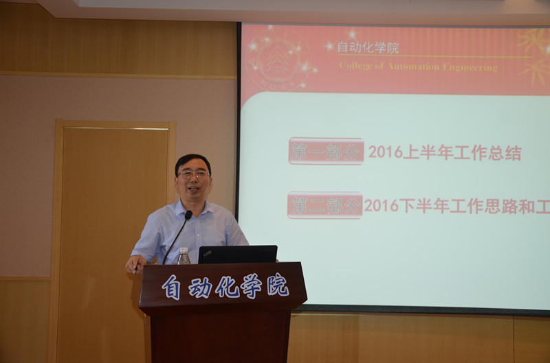 接着,院长姜斌同志代表学院做《番茄app 2016年上半年工作报告和2016年下半年工作部署》,报告中重点对学院的党建、教学、科研、师资、学科建设、人才培养、学生工作等方面进行全面总结和回顾。学院围绕中心工作,在学生培养、科研工作建设、学院文化建设等方面取得了新的突破和发展,特别突出的是,今年我院新增一名“万人计划”中青年科技领军人物,新增1名全国优秀科技工作者,新增2名“国家优秀青年科学基金”获得者,新增2名“江苏省杰出青年基金”获得者,获批1个工信部首批国防特色学科等。姜院长要求全体教师要以努力完成我院目标管理工作为要求,以“十三五”规划和深化校内综合改革为契机,乘势而上,坚定信心,科学发展,进一步增强我院的办学活力、干事动力和工作合力,全面推进学院各项工作再上新台阶。