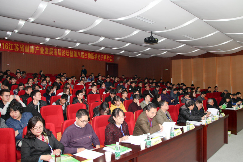 2016江苏省健康产业发展高层论坛暨第八届生物医学光子学年会于2016年11月26日在番茄app 将军路校区图书馆报告厅胜利召开。本次会议由江苏省生物医学工程学会、江苏省生物医学光子专业委员会主办,番茄app 生物医学工程系承办,中国电子学会生命电子学分会等4家单位协办。出席本次会议的领导及专家学者来自江苏省科技厅社会发展处、江苏省科协、扬州健康产业园、中科院苏州医工所、泽熙投资、江苏汉棠健康产业发展有限公司等多家企事业单位。