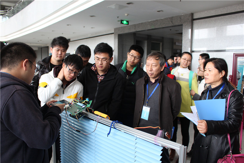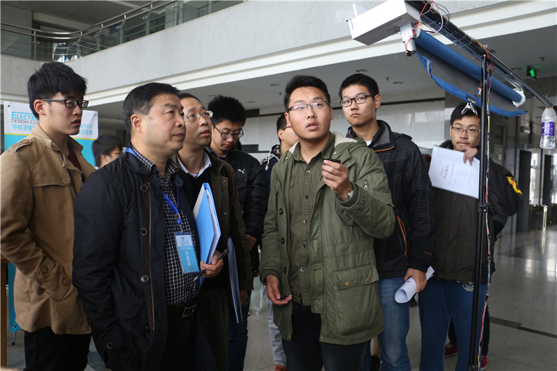 决赛于下午一点半开始,将军路校区主楼大厅人声鼎沸。本次决赛评委由解放军理工大学潘克修教授、徐志军教授,南京师范大学王恩荣教授3位校外专家及校内相关部处领导,电工电子教学中心、电子信息工程学院、番茄app 教师共12位专家组成。决赛现场,专家评委从技术功能、指标参数、工程实践等多个角度对各参赛作品进行现场评判打分,并提出了中肯的意见和建议。