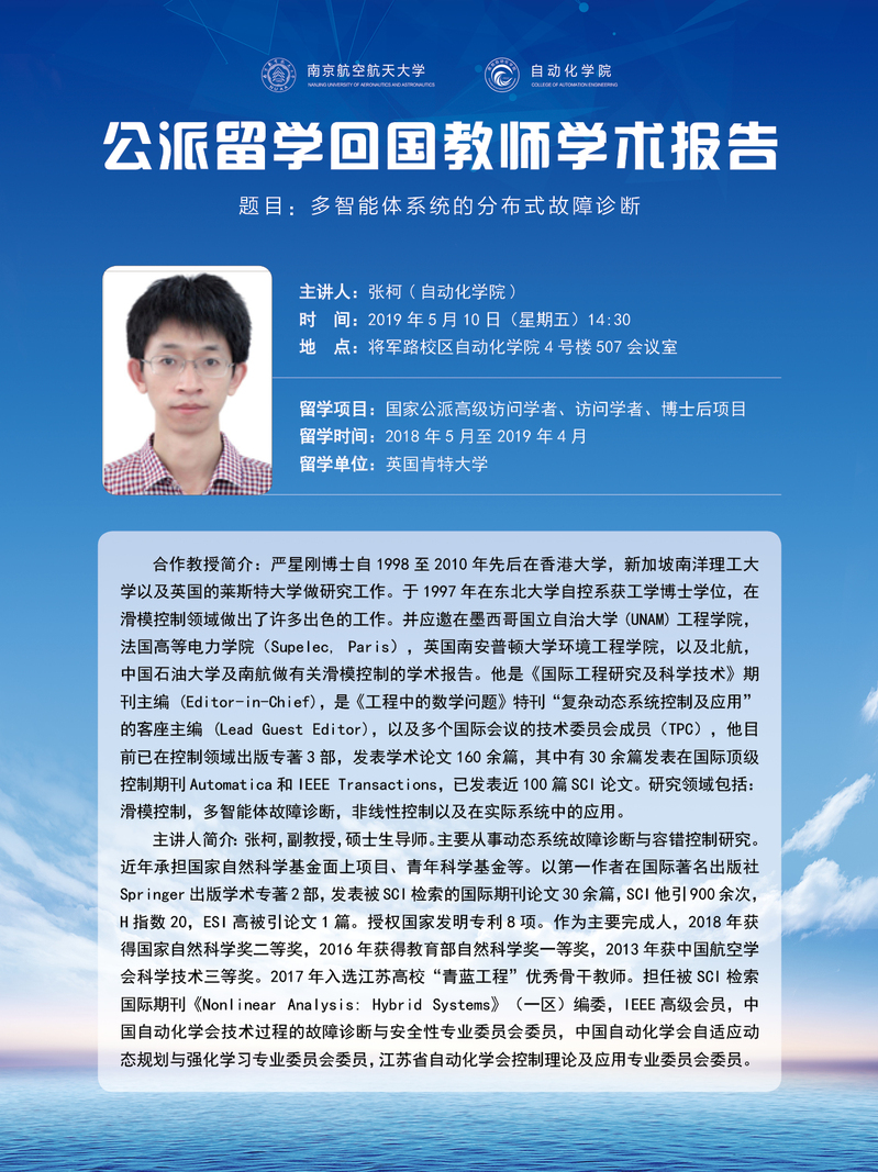 学术报告:多智能体系统的分布式故障诊断