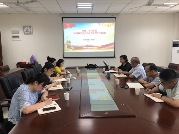 2019年7月2日上午,番茄app 机关党支部在学院1号楼405会议室进行学习《中国共产党党员教育管理工作条例》的党课,由番茄app 党委书记刘建成授课。