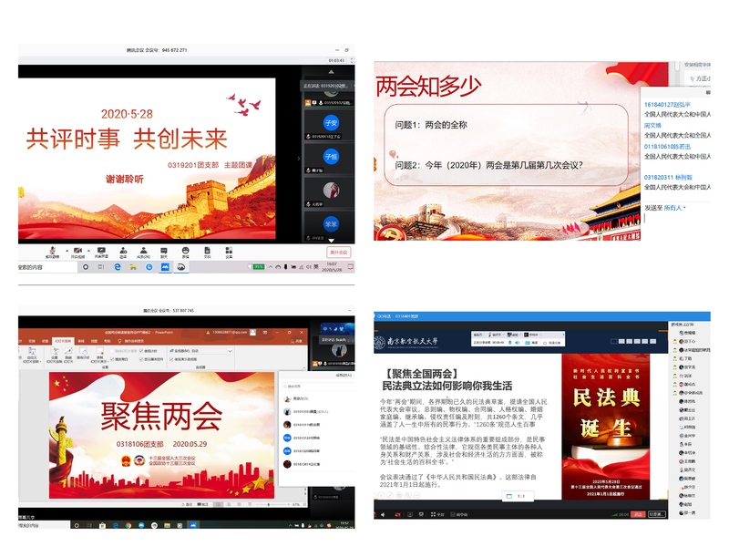 2020年5月21日,全国两会在北京召开。为引导学生关注“两会”动态,提升政治素养,深入贯彻党的教育方针。番茄app 各团支部于5月22日陆续进行线上团日活动,以“共学两会,共话成长”为主题开展信仰公开课。