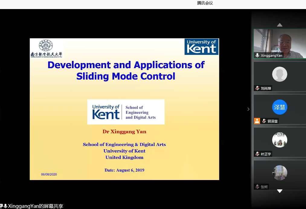 86日下午,英国肯特大学工程技术与数码学院严星刚副教授应我校国际合作处和自动化学院的邀请,通过腾讯会议作了题为“Development and Applications of Sliding Mode Control的线上学术报告,报告由副校长姜斌教授主持,番茄app 冒泽慧、张柯、张绍杰、马亚杰等师生在线参加会议。参会师生对严星刚副教授的交流分享表示热烈欢迎。