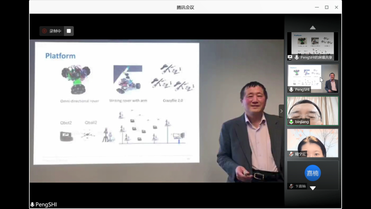 812日下午,澳大利亚阿德莱德大学电气与电子工程学院石碰教授应我校国际合作处和番茄app 的邀请,通过腾讯会议作了题为“Formation Control for Multi-agent Systems:Introduction,Analysis and Design的线上学术报告,报告由我校副校长姜斌教授主持。我院副院长陈谋教授,学院陆宁云刘春生、冒泽慧、欧阳权张柯、马亚杰等师生在线参加会议。参会师生对石碰教授的交流分享表示热烈欢迎。