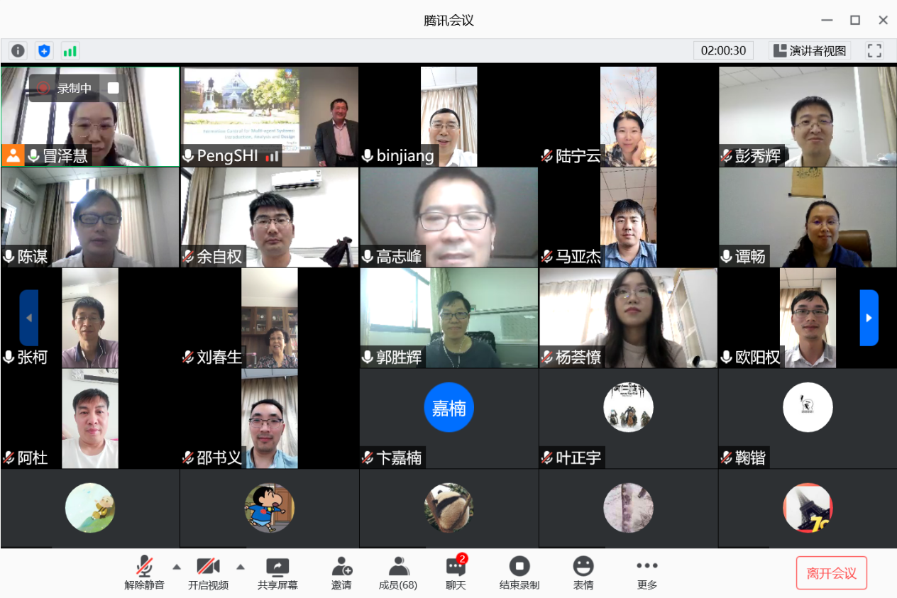 812日下午,澳大利亚阿德莱德大学电气与电子工程学院石碰教授应我校国际合作处和番茄app 的邀请,通过腾讯会议作了题为“Formation Control for Multi-agent Systems:Introduction,Analysis and Design的线上学术报告,报告由我校副校长姜斌教授主持。我院副院长陈谋教授,学院陆宁云刘春生、冒泽慧、欧阳权张柯、马亚杰等师生在线参加会议。参会师生对石碰教授的交流分享表示热烈欢迎。