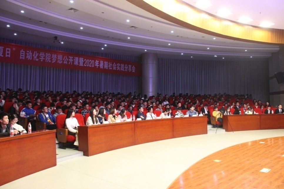2020年10月18日晚“自你精彩,逐梦夏日,青春向祖国报告”番茄app 梦想公开课暨暑期社会实践分享会在一号楼四楼报告厅成功举办。校团委副书记赵铮老师,院党委副书记张跃老师,院团委书记陈慧云老师,以及各年级辅导员列席此次分享会,学院2020级本科生近500人到场观看。