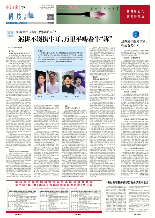 交汇点讯 在很多人眼中,科研人身上自带牛的属性,优秀的科研学者也被人们称为科研“大牛”。新春伊始,《新华日报·科技周刊》记者走访对话了四位属牛的科研“牛人”,不管是“大牛”还是“小牛”,是开拓创新的拓荒牛、甘为人梯的孺子牛,还是躬耕不辍的老黄牛……他们都有饱满的科研计划,以不怕苦、能吃苦的“牛劲”“牛力”,用创新点燃科技强国引擎。