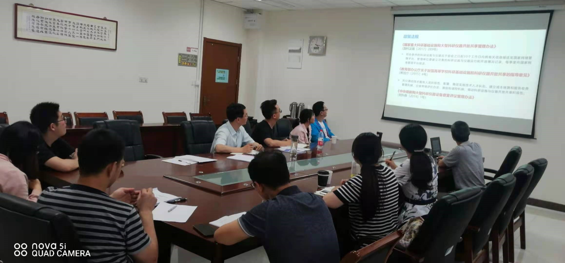 张卓然副院长首先对阎志军副处长一行来学院传经送宝表示感谢,他表示学院一定会高度重视大型仪器设备开放共享工作,进一步加强宣传,使学院师生充分认识到大型仪器设备开放共享工作的重要性和意义,统一思想,提高站位,把大型仪器设备的共享工作落实到位,落实到人,以优异的成绩通过国家审核。