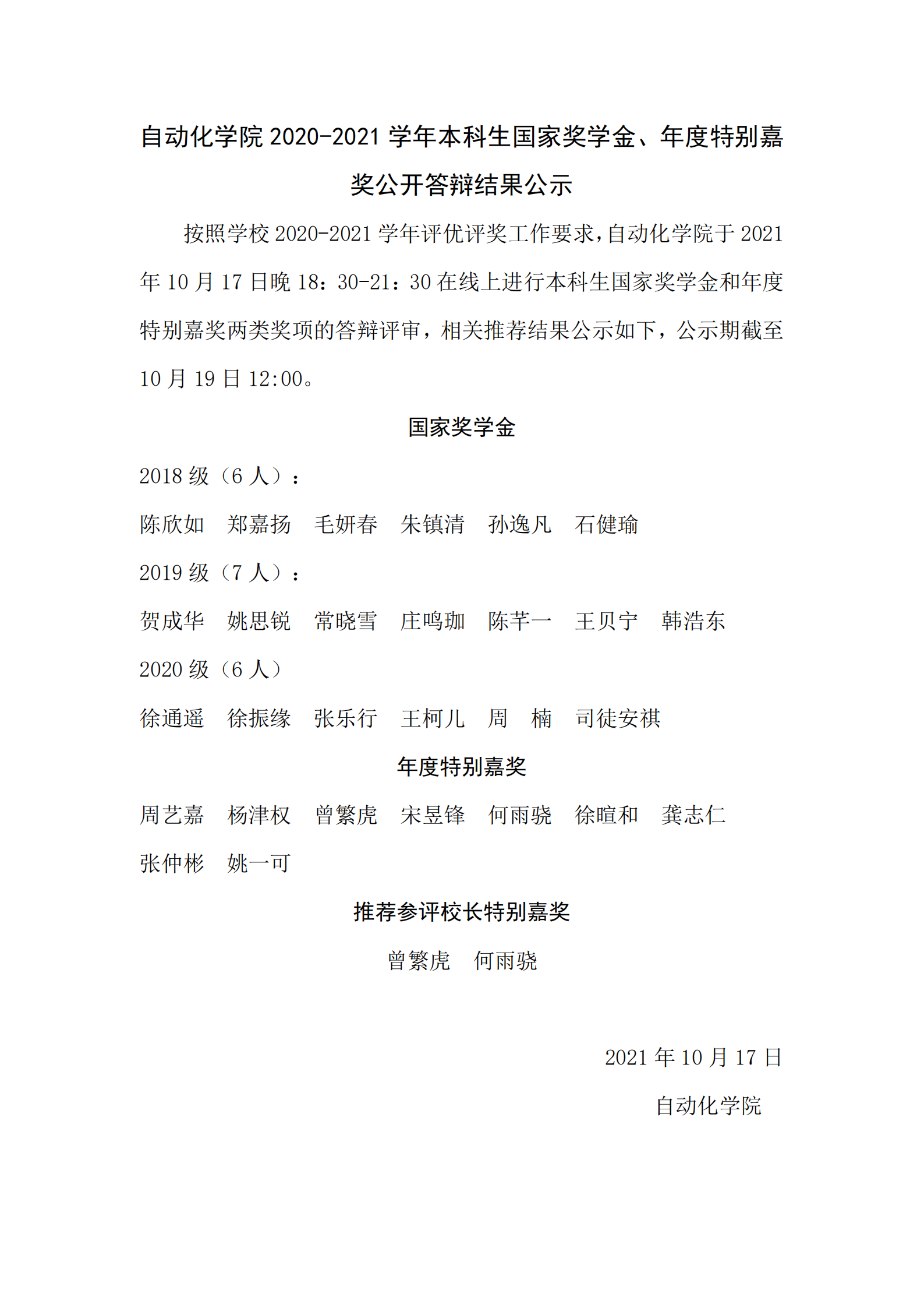 番茄app 2020-2021学年本科生国家奖学金、年度特别嘉奖公开答辩结果公示