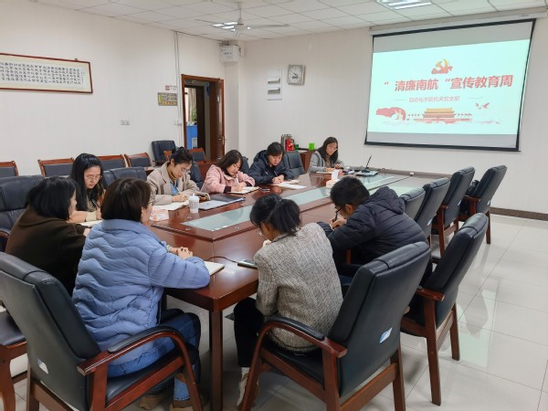 最后支部书记王俊彦通报了机关党支部两位发展对象的最新入党进程,并就机关党员同志赴天目湖校区开展领航工程进行了交流讨论。会后,支部党员纷纷表示深受触动,要坚持把遵守纪律、廉洁从业作为工作准则,从我做起、从身边小事做起,积沙成塔,积微成著,为建设“清廉南航”贡献自己的力量!