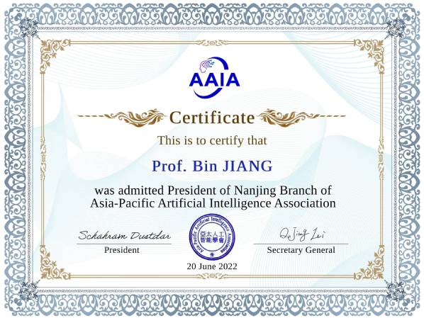 6月20日,我校副校长姜斌教授被亚太人工智能学会(Asia- Pacific Artificial Intelligence Association,AAIA)聘为南京分会主席,负责筹建AAIA南京分会。