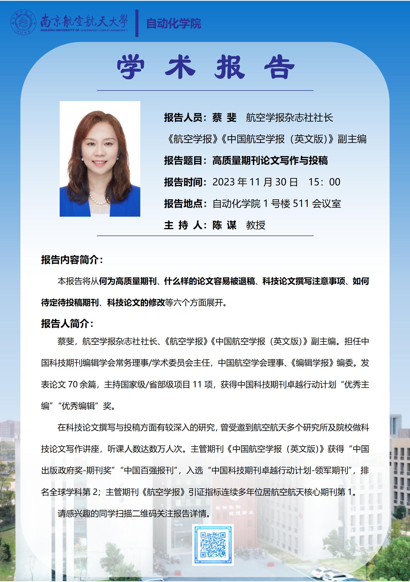 【学术报告】蔡斐:高质量期刊论文写作与投稿