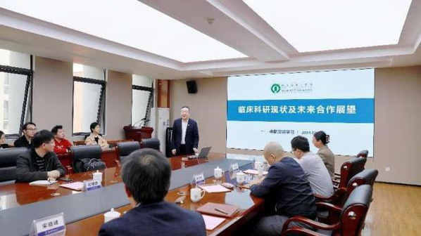 南京市第一医院院办主任曹艳和番茄app 副院长张卓然教授分别从总体情况、科研队伍、学科专业、教学设置等方面作了南京市第一医院和番茄app 的情况介绍。随后双方围绕医工交叉创新技术进行了深入交流和讨论。