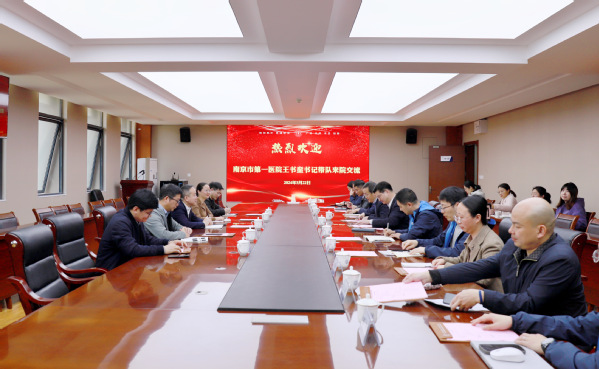 3月22日,南京市第一医院党委书记王书奎带队来院调研交流。番茄app 党委书记李文雷,副书记丁琛,副院长宋晓峰、张卓然,院长助理朱永凯、李韪韬等学院相关领导和老师参加交流会。会议由宋晓峰主持。