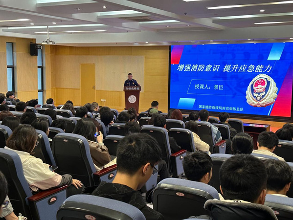 为进一步加强校内消防安全工作,普及消防安全知识,增强师生消防安全意识,提高全体师生自护、自救能力,2024年3月28日,学院邀请国家消防救援局南京训练总队教学训练处景臣副处长做消防安全知识讲座,讲座由学院党委副书记丁琛主持。