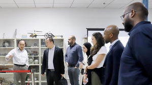 4月18日,阿联酋阿布扎比技术创新研究院(Technology Innovation Institute, Abu Dhabi, UAE)首席研究员Zhaohui Cen带领团队成员Amanda、Younes Al-Younes、Zahi Mohamed Osman Mohamed、Francisco Bilendo、Maryam Alshehhi一行6人回访我院。番茄app 院长陈谋,自动控制系、电气工程系、测试工程系主要负责人参加。