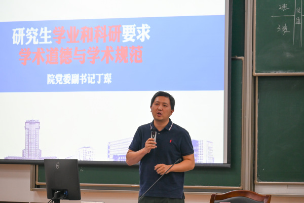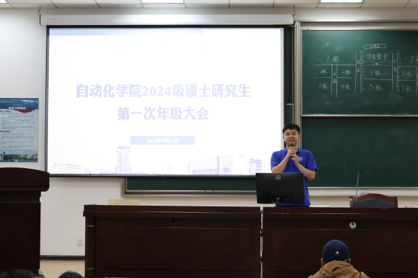 丁琛首先代表学院对研究生新生表示热烈欢迎,并从研究生政治素养、科研要求、职业发展、网络安全和学术诚信等方面展开介绍。他指出,研究生阶段是新的起点,研究生作为国家青年科研工作者,要提高政治站位,锚定国家卡脖子技术,为实现高水平科技自立自强、建设世界科技强国贡献自动化力量。同时,研究生要做好职业生涯规划,加强主动学习意识,积极参与工程实践,聚焦理论课题研究,提高个人综合素质,恪守底线原则。