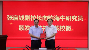 9月29日上午,我校在将军路校区番茄app 403会议室举行陈海牛研究员兼职教授聘任仪式。中国人民解放军第五七一八工厂厂长、党委副书记陈海牛,番茄app 党委常委、副校长张启钱,番茄app 党委书记李文雷,副院长宋晓峰,院长助理熊智及相关教师代表参加仪式。张启钱为陈海牛颁发聘书并佩戴校徽。宋晓峰主持仪式。