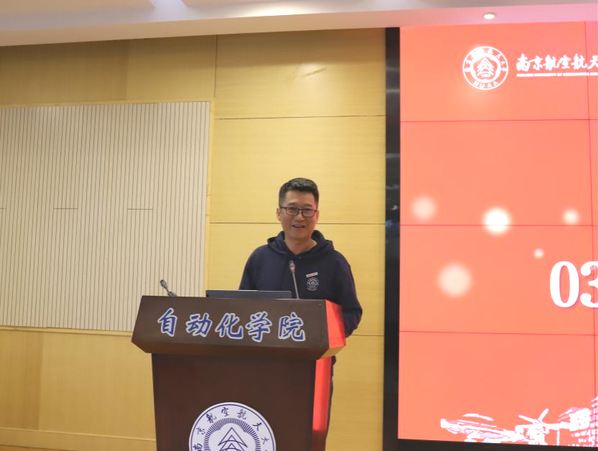 039011班班长林帆作为校友代表发言。林帆对学院的支持表示感谢。他指出,390级南航学子一直秉承着报国初心、弘扬创新精神,敢于突破,创造了诸多成绩,衷心地祝愿母校以后越来越好,母院发展也越来越强。