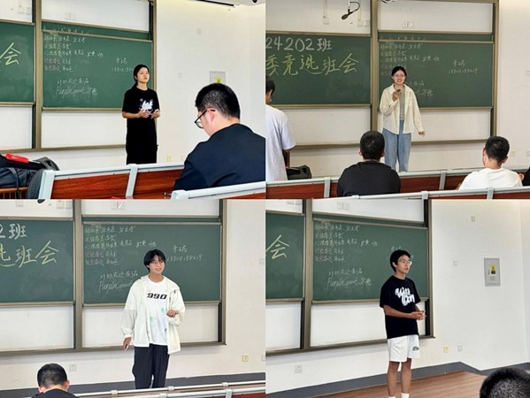 朱珉老师随后组织同学们进行自我介绍与班委选举。他强调,大学生活是同学们人生中的重要一环,大家彼此之间可能成为毕生的朋友与伙伴,希望0324202班每位同学发挥积极向上的态度,形成友好融洽的氛围。朱珉老师同时表示,班级建设离不开班团委的领导,希望新就任的班团委能发挥带头作用,主动帮助同学们解决问题,共同建设良好的班级环境。