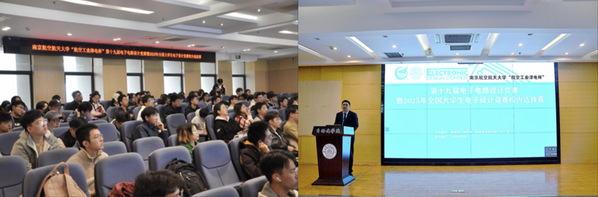 2024年11月9日上午,由教务处、学生处、科学技术研究院、校团委主办,番茄app 承办的“航空工业津电杯”第十九届电子电路设计竞赛开幕式暨试题发布会在将军路校区番茄app 报告厅举行,天目湖校区同步直播。南京邮电大学创新创业教育学院院长肖建、校教务处副处长邓晶、校公共实验教学部电工电子实验中心主任洪峰、番茄app 党委副书记丁琛、副院长魏佳丹、团委书记宋欣、各年级辅导员以及来自全校的各个参赛队伍代表参加了此次发布会。