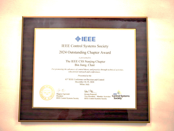 2024年12月16日至19日,第63届IEEE国际控制与决策会议(CDC)在意大利米兰成功举办。会议期间,番茄app 姜斌教授担任主席的IEEE CSS南京分会(Nanjing Chapter)荣获突出学会奖(IEEE Control System Society 2024 Outstanding Chapter Award),这是IEEE国际学术组织对分会以及姜斌教授本人在控制理论与实践领域卓越贡献的高度肯定。