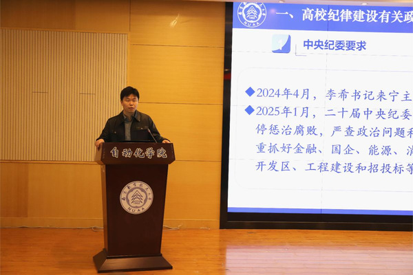 会议初始,纪委办正科级纪检监察员戴老师做党风廉政专题辅导报告。报告深入浅出地阐述了高校纪律建设的重要性,结合当下政策和实际案例,强调了党员干部在廉洁自律方面的责任与担当。戴老师表示全体教职工应时刻保持清醒头脑,筑牢思想防线,守住行为底线,做到清正廉洁、风清气正。戴老师还就如何在实际工作中落实高校纪律建设提出了具体建议,鼓励教职工在日常工作中加强自我监督,积极参与学校廉政文化建设。
