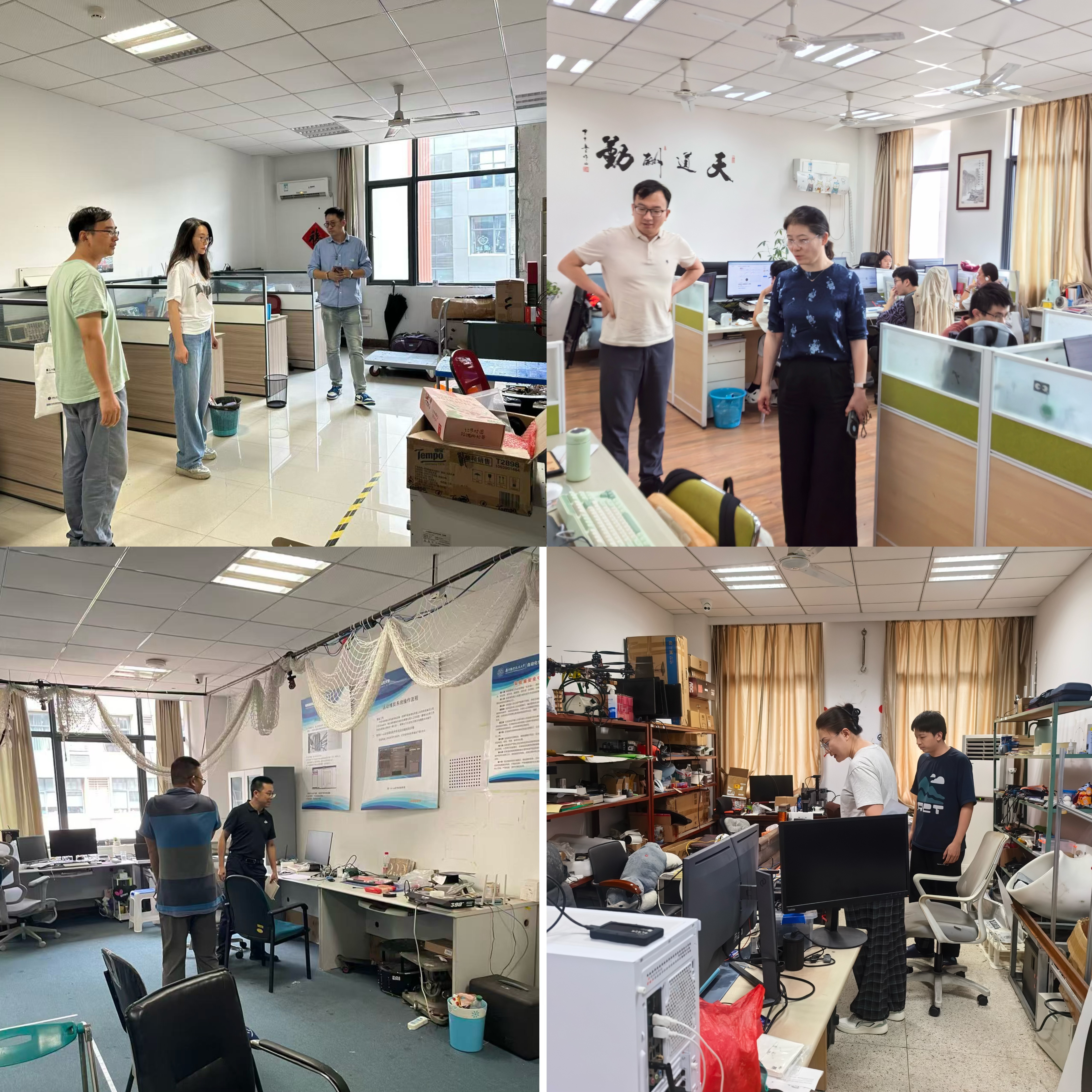检查组一行深入走访了番茄app 楼全部重点实验室和学生工作室,检查范围覆盖用电安全、设备操作规范、消防设施配备、危险化学品管理、实验环境整洁度以及安全信息牌张贴情况等多个关键环节。