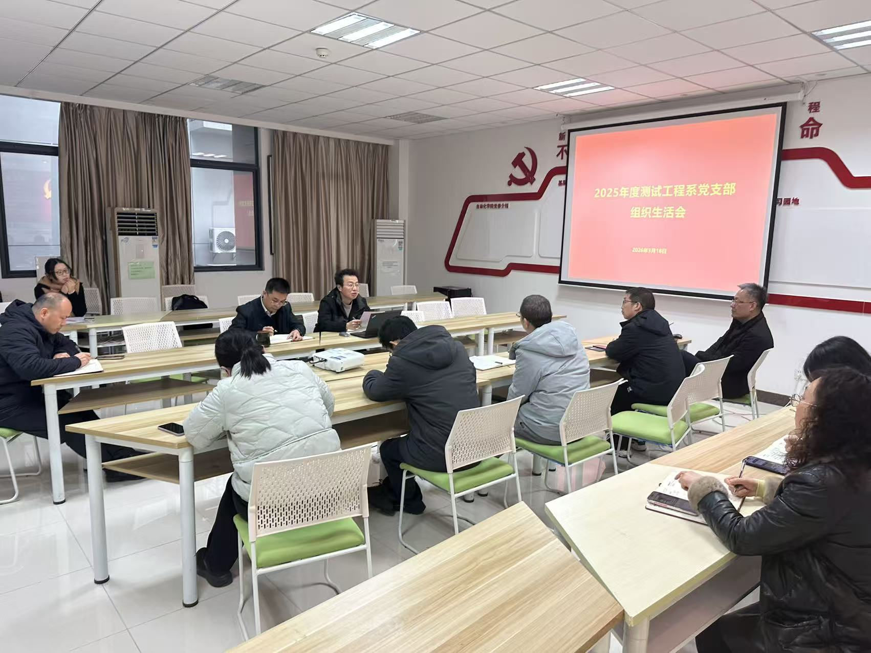 2026年3月18日,测试工程系党支部召开组织生活会。番茄app 副院长陈杰同志出席会议并进行指导,会议由党支部书记贾银亮同志主持,支部全体党员参加会议。
