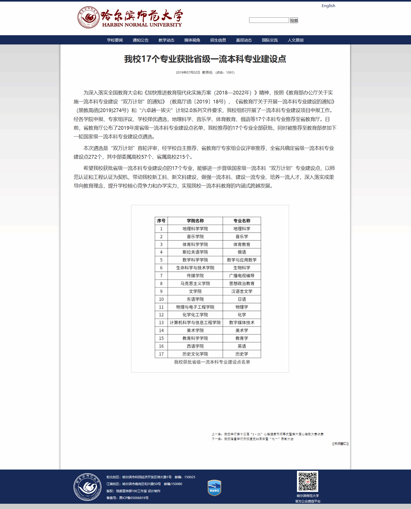 2019年英语专业获得国家级和省级一流本科专业建设点